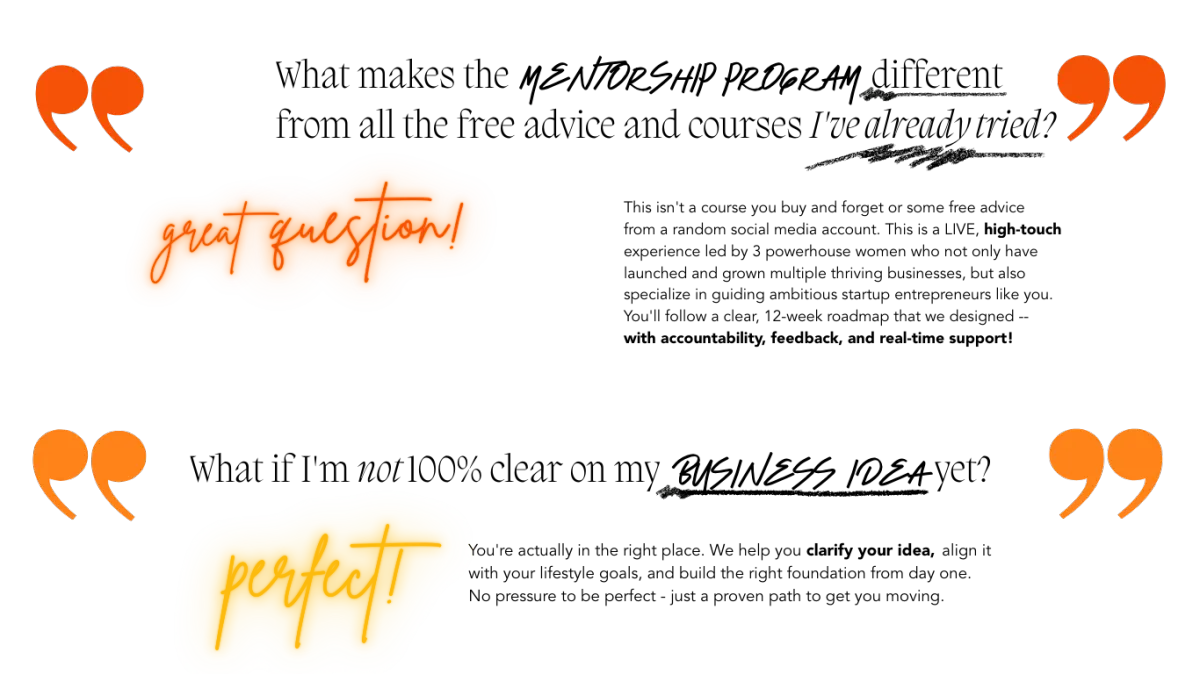 This mentorship experience is the culmination of years of hard work and passion that we are excited to pour into you + your business so that you can achieve all of your dreams and goals!